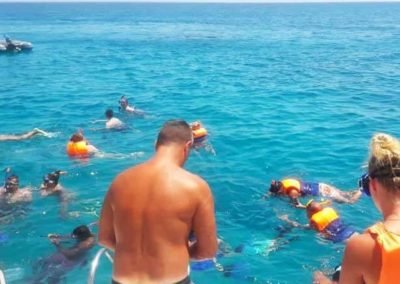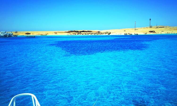 We start our island trip, sailing in nice company by comfortable boat from Hurghada, to cross the Red Sea in the morning breeze and gentle sun.